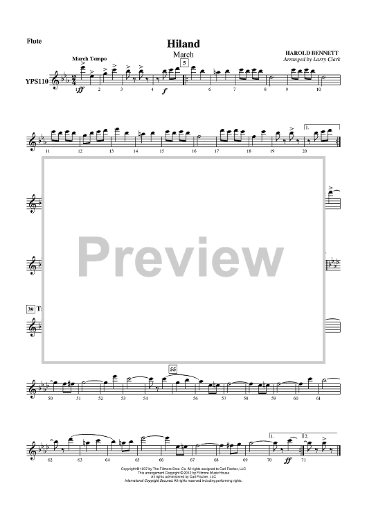 Digital Sheet Music for Hiland (March) - Flute by Larry Clark, Harold Bennett scored for Concert Band; id:431406