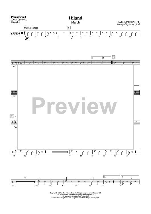 Digital Sheet Music for Hiland (March) - Percussion 2 by Larry Clark, Harold Bennett scored for Concert Band; id:431425