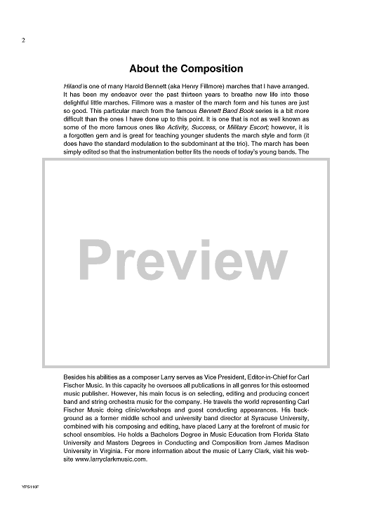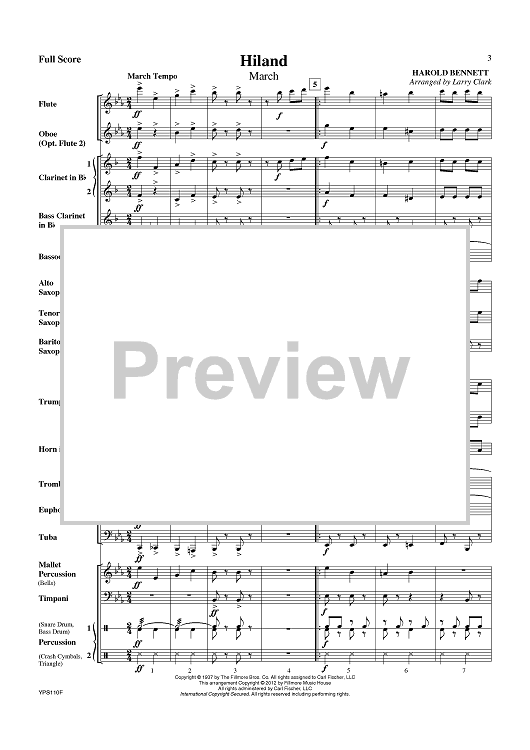 Digital Sheet Music for Hiland (March) - Score by Larry Clark, Harold Bennett scored for Concert Band; id:431405