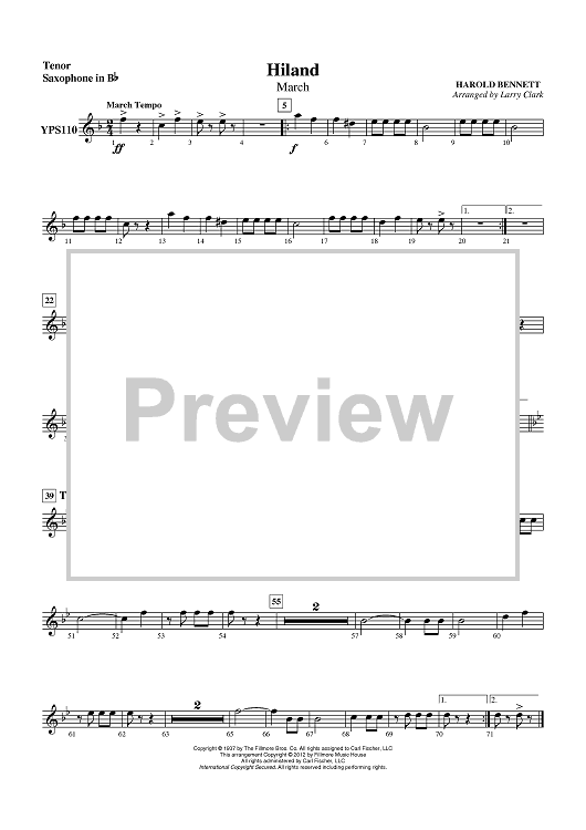 "Hiland (March) - Tenor Sax" Sheet Music by Harold Bennett