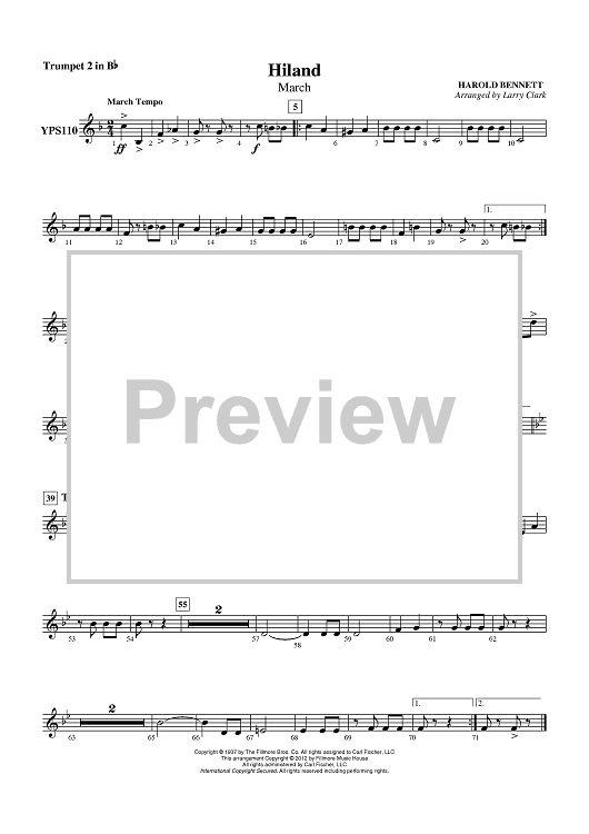 Digital Sheet Music for Hiland (March) - Trumpet 2 in Bb by Larry Clark, Harold Bennett scored for Concert Band; id:431416