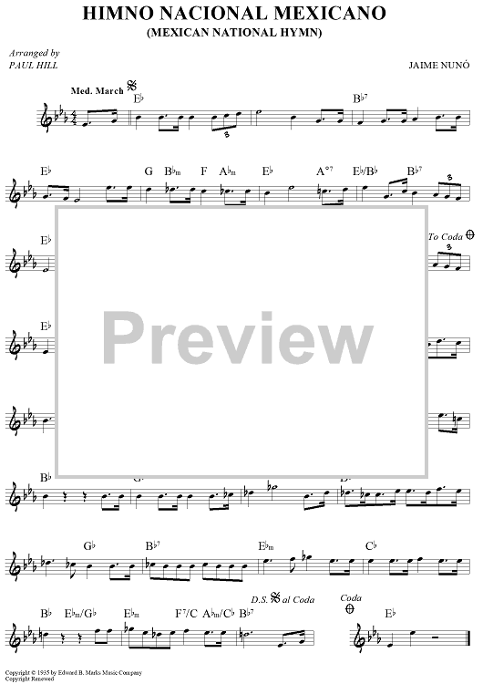 Digital Sheet Music for Himno Nacional Mexicano (Mexican National Hymn) by Paul Hill, Jaime Nuno scored for Lead Sheet; id:448990