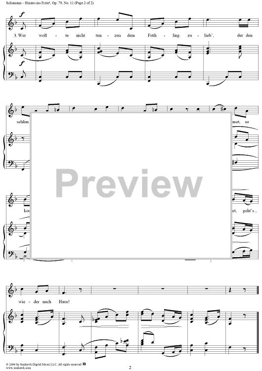 Digital Sheet Music for Hinaus ins Freie!, No. 11, Op. 79 by Robert Schumann, August Heinrich Hoffmann von Fallersleben scored for Voice/Piano; id:318137