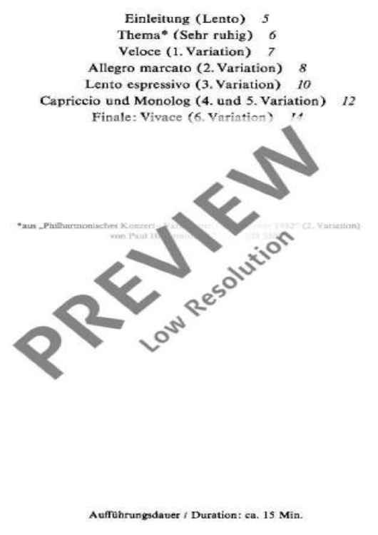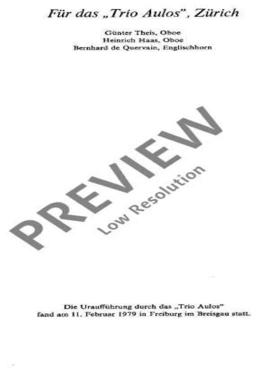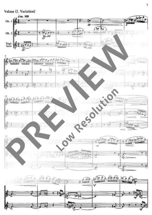 Dieses neuzeitliche Trio für Oboeninstrumente weist die gleiche Besetzung auf wie das bekannte Beethovensche Opus 87; das Hindemith-Thema wird in kontrastierenden, teils spielfreudigen, teils besinnlichen Formen abgewandelt, so dass jeder der drei Spieler voll zur Geltung kommt. Ein Werk konzertanter Kammermusik, das darüber hinaus auch als Studienwerk für Oboenklassen (fortgeschrittene Studenten) Verwendung finden kann.