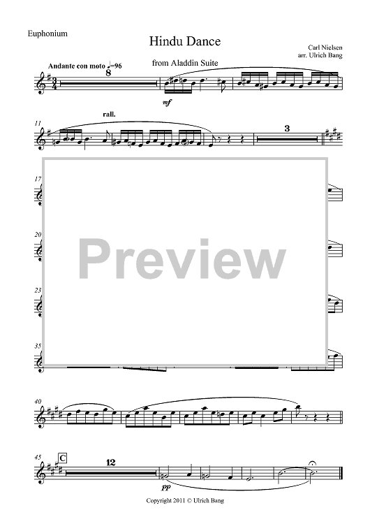 Digital Sheet Music for Hindu Dance - Euphonium by , Carl Nielsen, Ulrich Bang scored for Brass Ensemble; id:419766