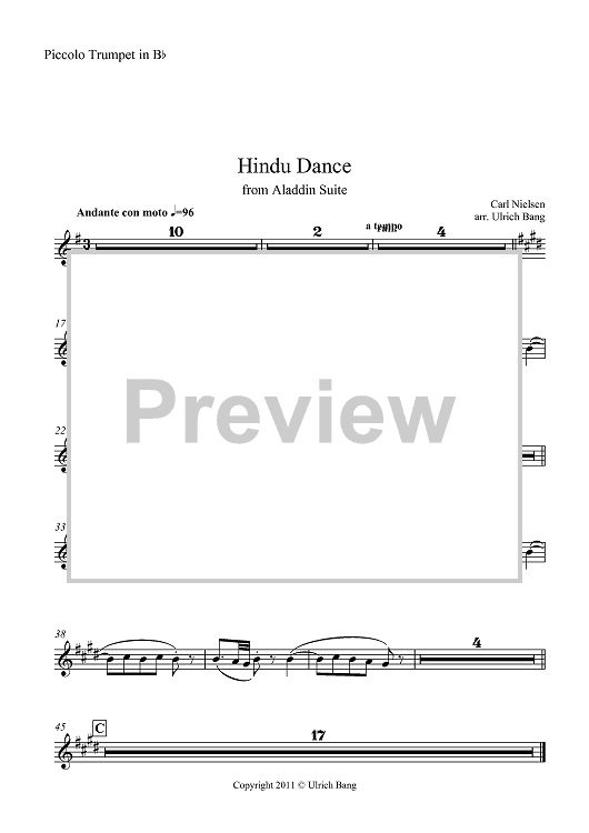 Digital Sheet Music for Hindu Dance - Piccolo Trumpet in Bb by , Carl Nielsen, Ulrich Bang scored for Brass Ensemble; id:419755