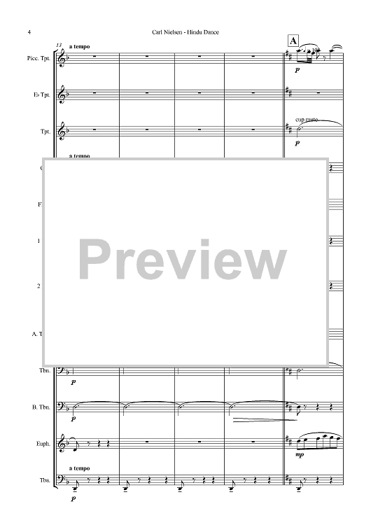 Digital Sheet Music for Hindu Dance - Score by , Carl Nielsen, Ulrich Bang scored for Brass Ensemble; id:419754