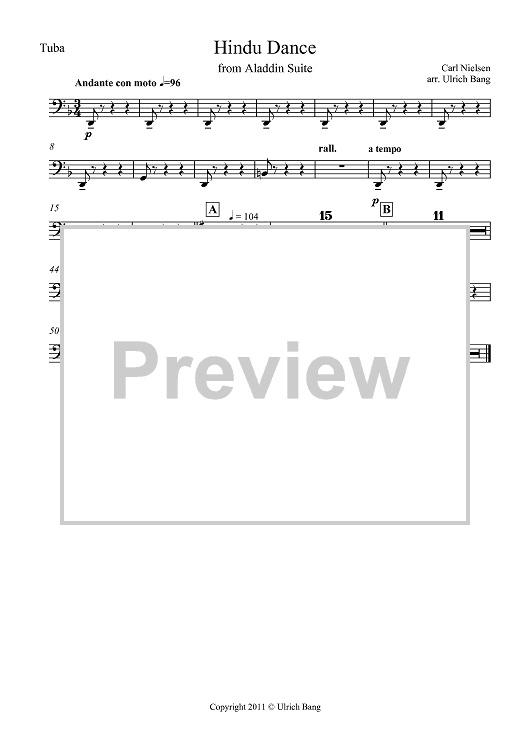 Digital Sheet Music for Hindu Dance - Tuba by , Carl Nielsen, Ulrich Bang scored for Brass Ensemble; id:419767