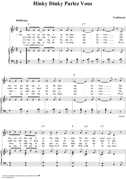 "Hinky Dinky Parlez Vous" Sheet Music by Traditional