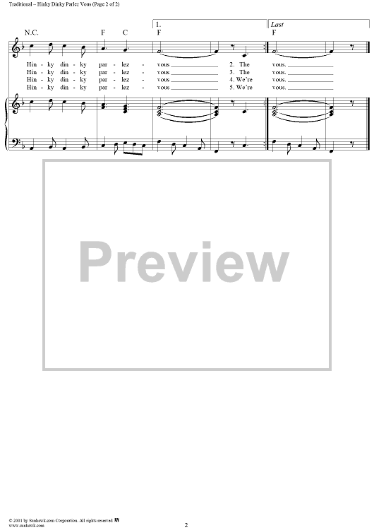 Digital Sheet Music for Hinky Dinky Parlez Vous by Traditional scored for Piano/Vocal/Chords; id:261271