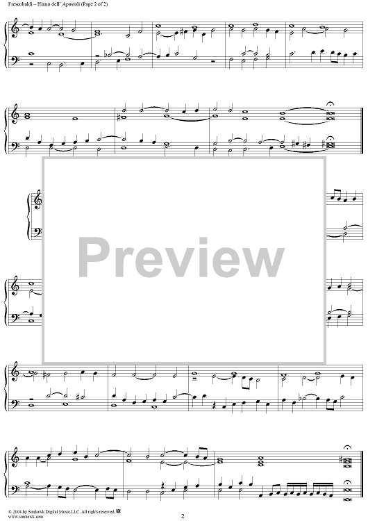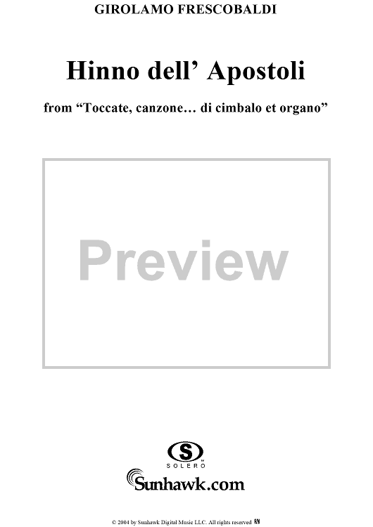 Digital Sheet Music for Hinno Dell' Apostoli, No. 20 from "Toccate, canzone ... di cimbalo et organo", Vol. II by Girolamo Frescobaldi scored for Harpsichord or Organ; id:295960