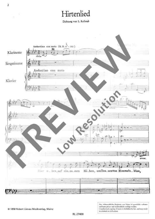Digital Sheet Music for Hirtenlied - Score and Parts by Giacomo Meyerbeer scored for Soprano (tenor), Clarinet And Piano; id:493368