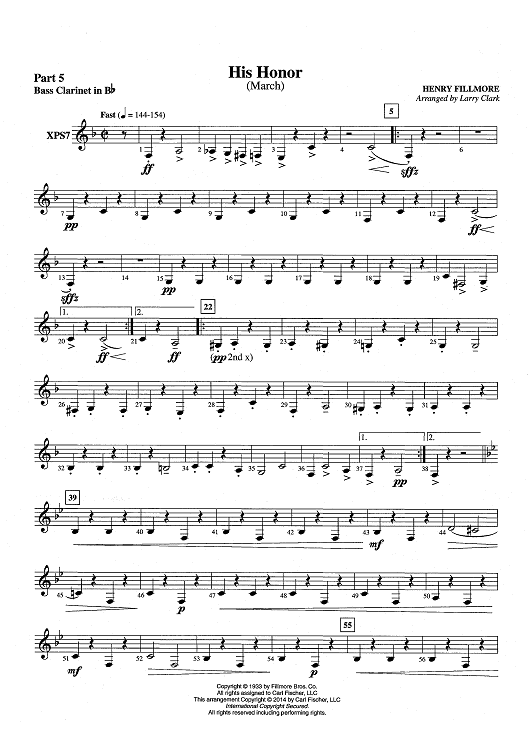 "His Honor (March) - Part 5 Bass Clarinet in Bb" Sheet Music by Henry Fillmore