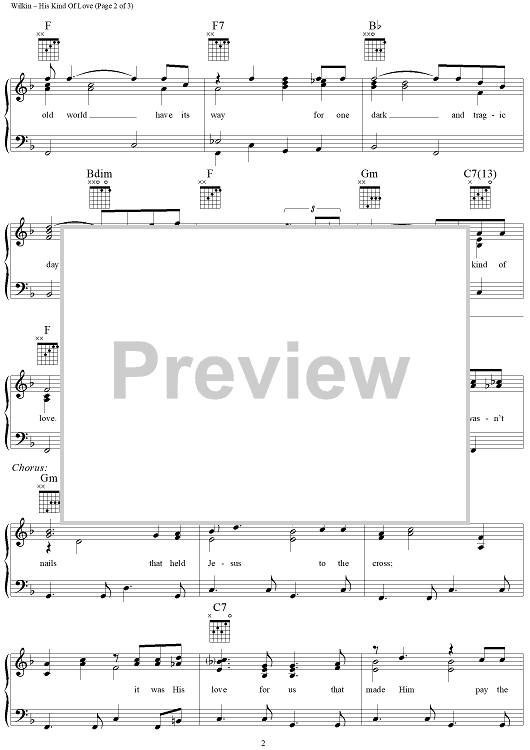 Digital Sheet Music for His Kind of Love by Marijohn Wilkin scored for Piano/Vocal/Chords; id:263995