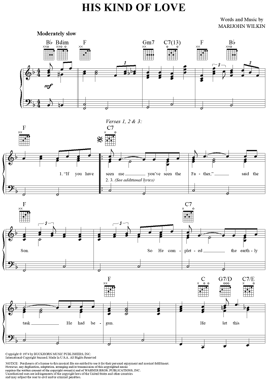"His Kind of Love" Sheet Music by Marijohn Wilkin