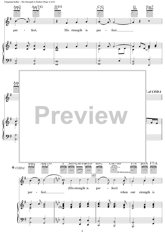 Digital Sheet Music for His Strength Is Perfect by Steven Curtis Chapman, Jerry Salley scored for Piano/Vocal/Chords; id:95498