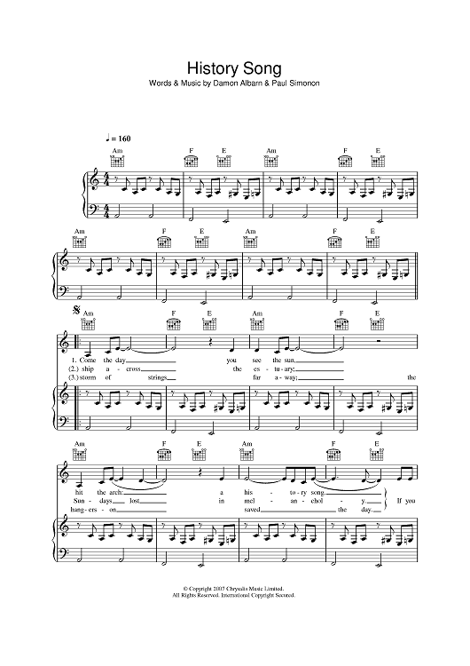 Digital Sheet Music for History Song by Paul Simonon, Damon Albarn scored for Piano/Vocal/Chords; id:401938