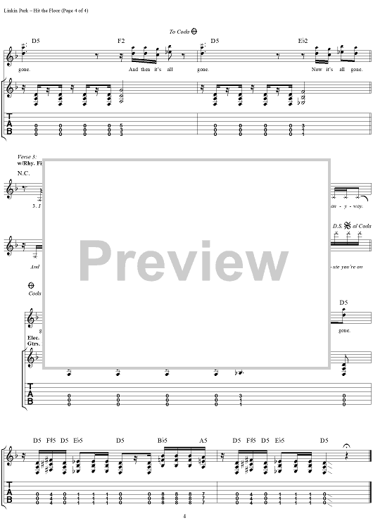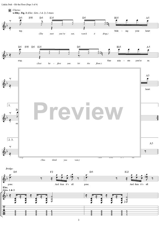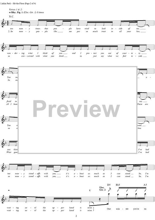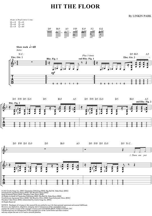 Digital Sheet Music for Hit the Floor by Linkin Park scored for Guitar Tab/Vocal; id:297393