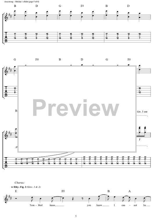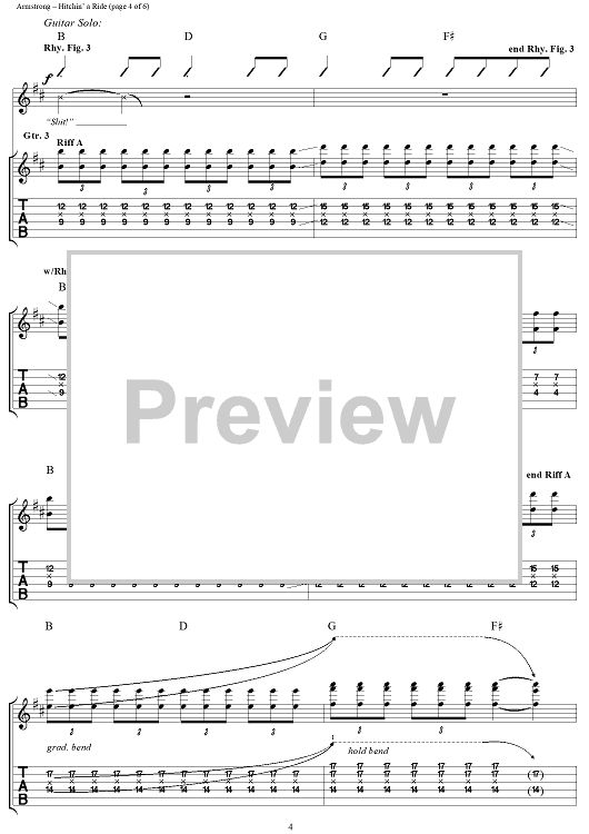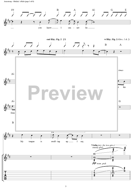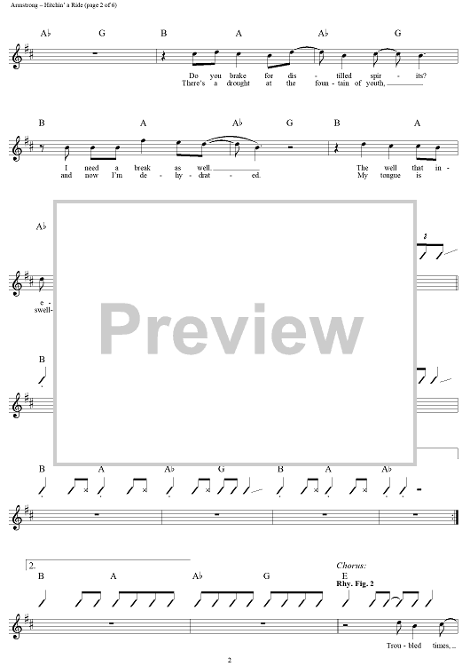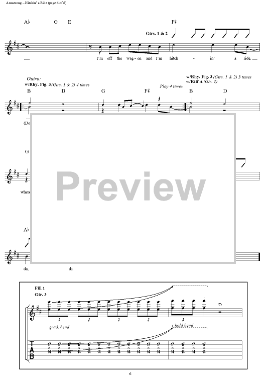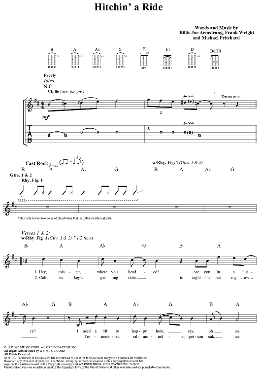 Digital Sheet Music for Hitchin' a Ride by Billie Joe Armstrong, Frank Edwin Wright III, Michael Pritchard, Green Day scored for Guitar Tab/Vocal; id:95996