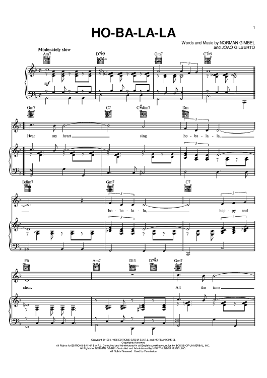 Digital Sheet Music for Ho-Ba-La-La by Norman Gimbel, Jorge Ben, Joao Gilberto scored for Piano/Vocal/Chords; id:383169