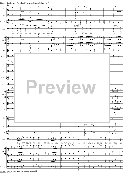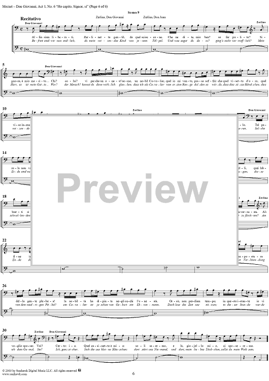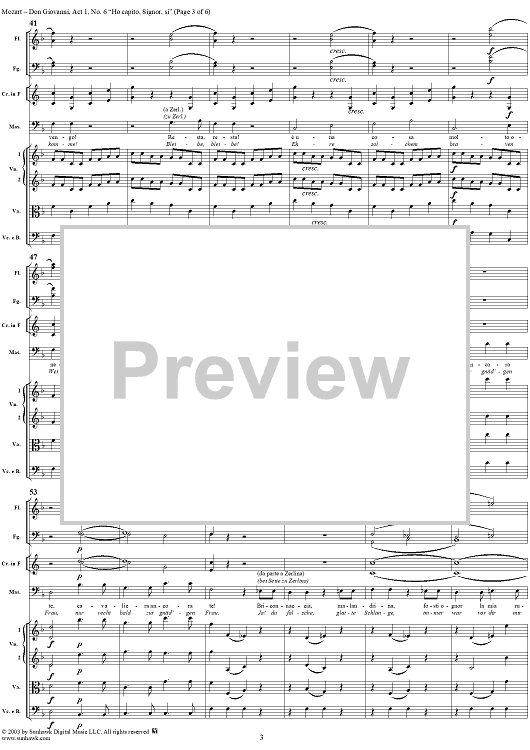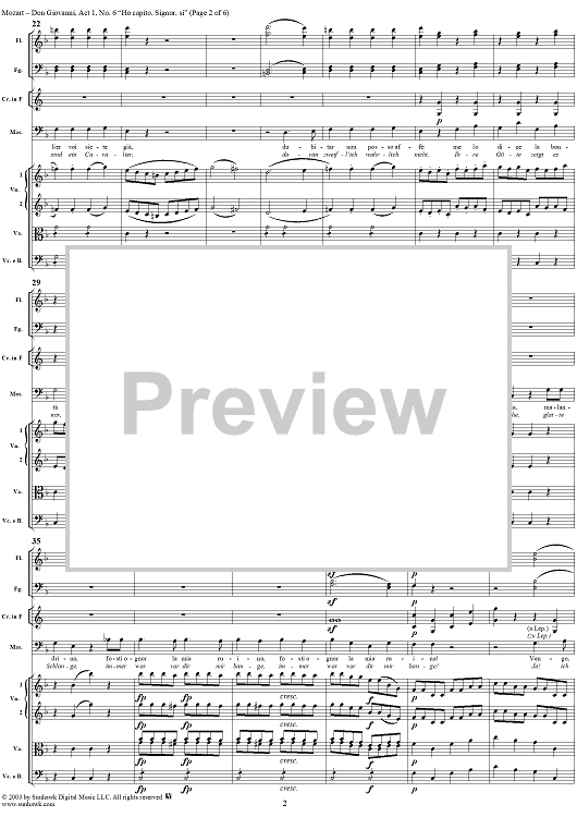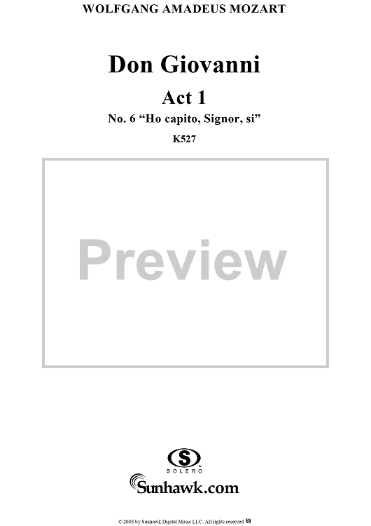 Digital Sheet Music for "Hò capito, Signor, si", No. 6 from "Don Giovanni", Act 1, K527 - Full Score by Wolfgang Amadeus Mozart scored for Voice and Orchestra; id:291904