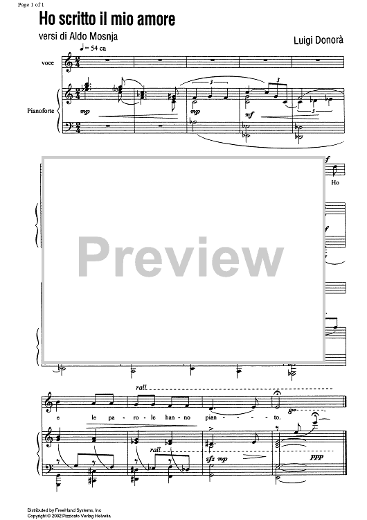 Digital Sheet Music for Ho scritto il mio amore - Score by Luigi Donorà scored for Mezzo-soprano or Baritone/Piano; id:349917