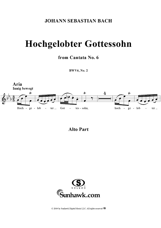 ""Hochgelobter Gottessohn", Aria, No. 2 from Cantata No. 6: "Bleib' bei uns, denn es will Abend werden" - Alto" Sheet Music by Johann Sebastian Bach