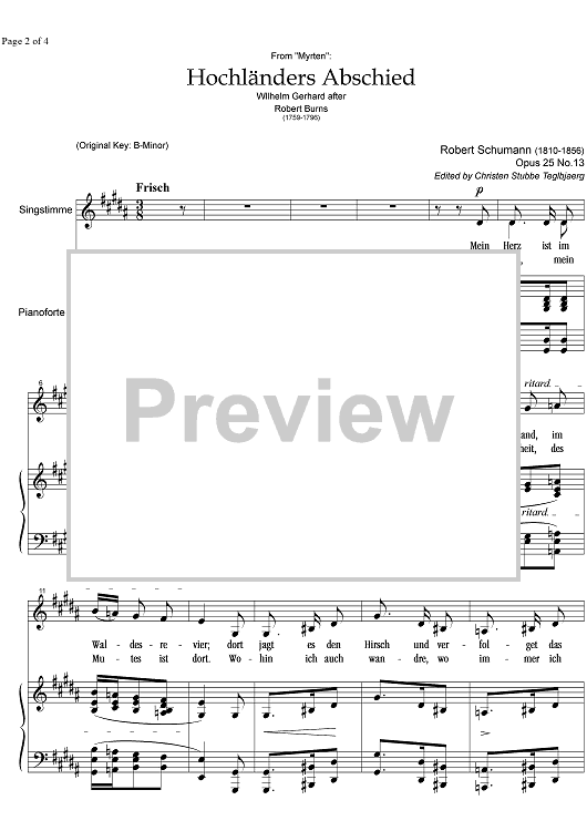 Digital Sheet Music for Hochländers Abschied Op.25 No.13 by , Robert Schumann scored for Mezzo-soprano or Baritone/Piano; id:332494