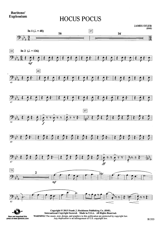Digital Sheet Music for Hocus Pocus - Baritone/Euphonium by James Syler scored for Concert Band; id:439268