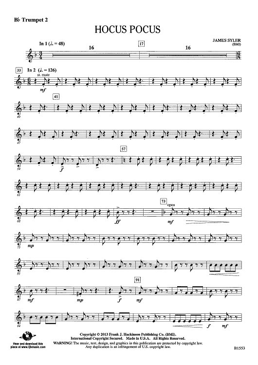 "Hocus Pocus - Bb Trumpet 2" Sheet Music by James Syler