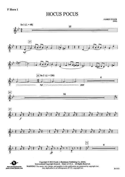 Digital Sheet Music for Hocus Pocus - F Horn 1 by James Syler scored for Concert Band; id:439263