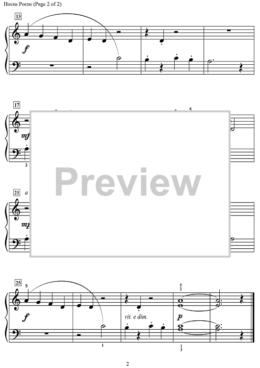 Digital Sheet Music for Hocus Pocus by Kevin Costley scored for Piano; id:504966