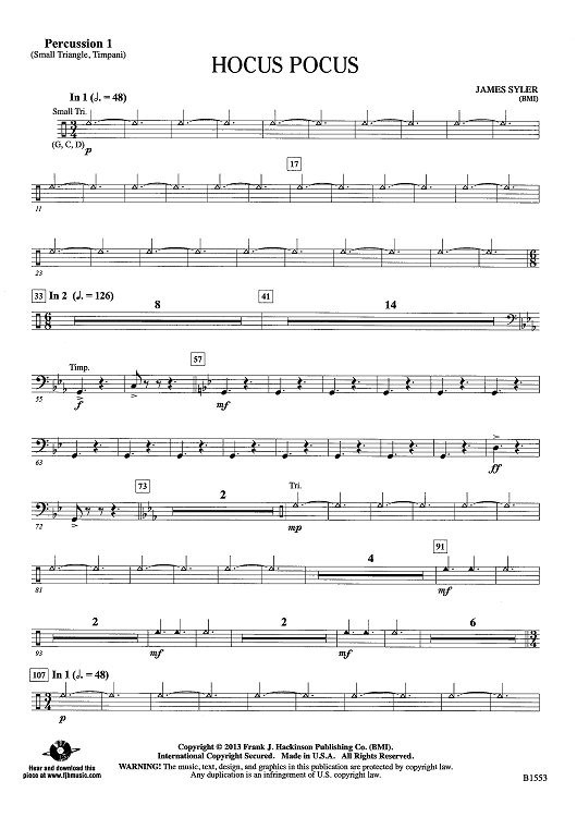 Digital Sheet Music for Hocus Pocus - Percussion 1 by James Syler scored for Concert Band; id:439271