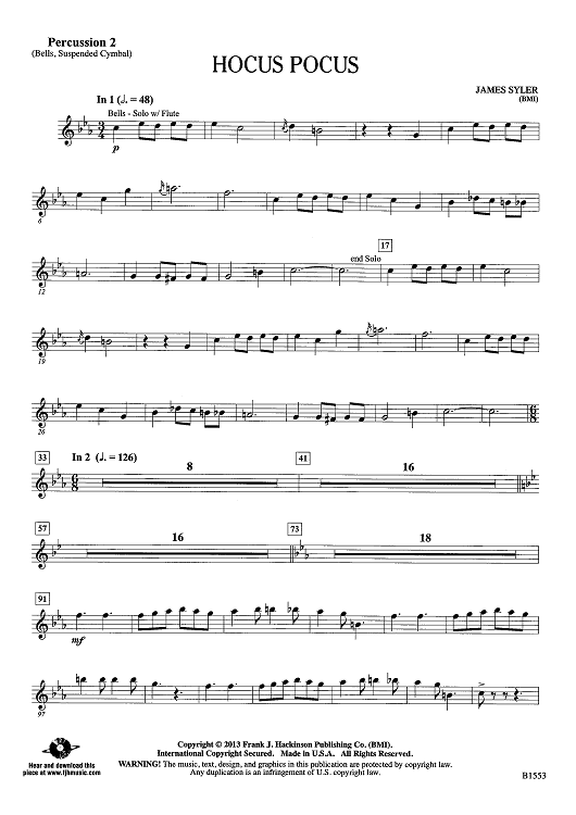 Digital Sheet Music for Hocus Pocus - Percussion 2 by James Syler scored for Concert Band; id:439272