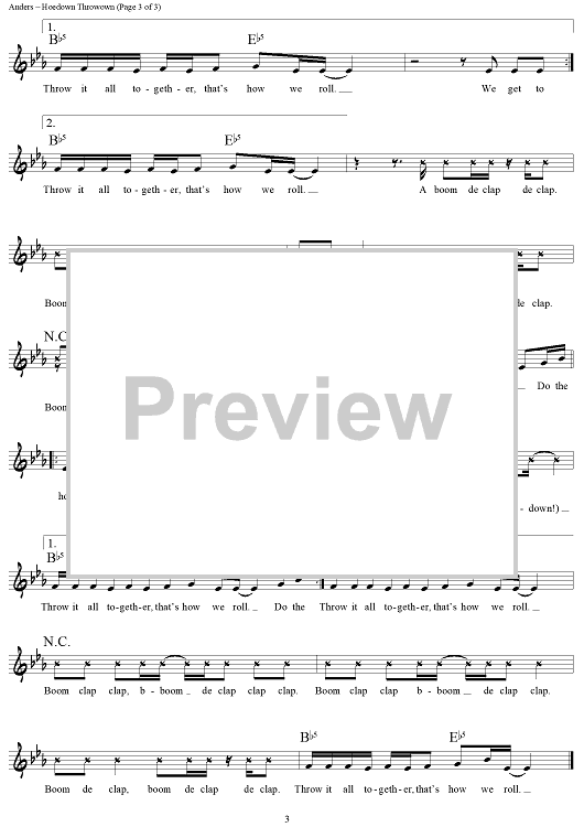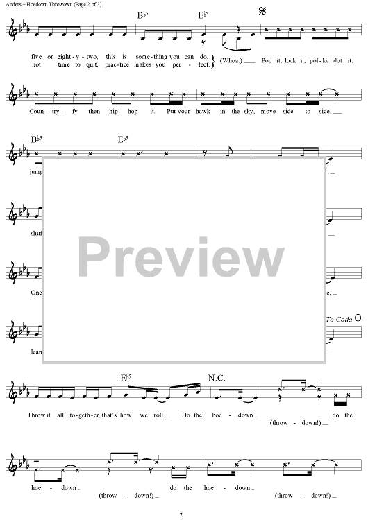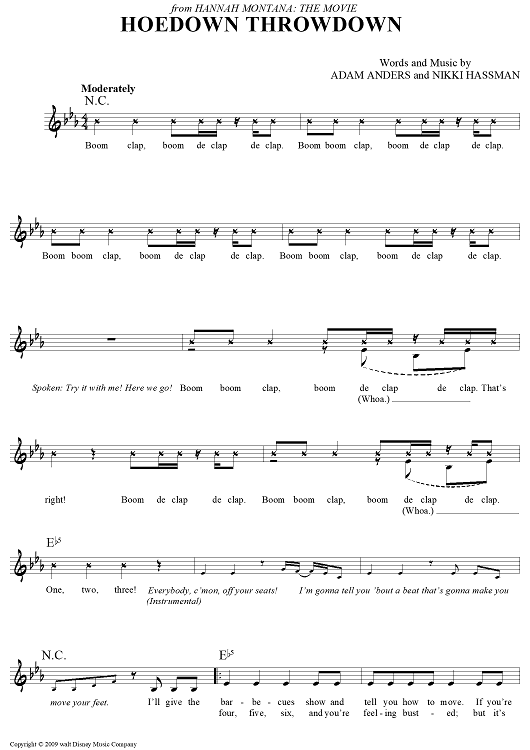Digital Sheet Music for Hoedown Throwdown by Nikki Hassman, Adam Anders, Miley Cyrus scored for Lead Sheet; id:441835