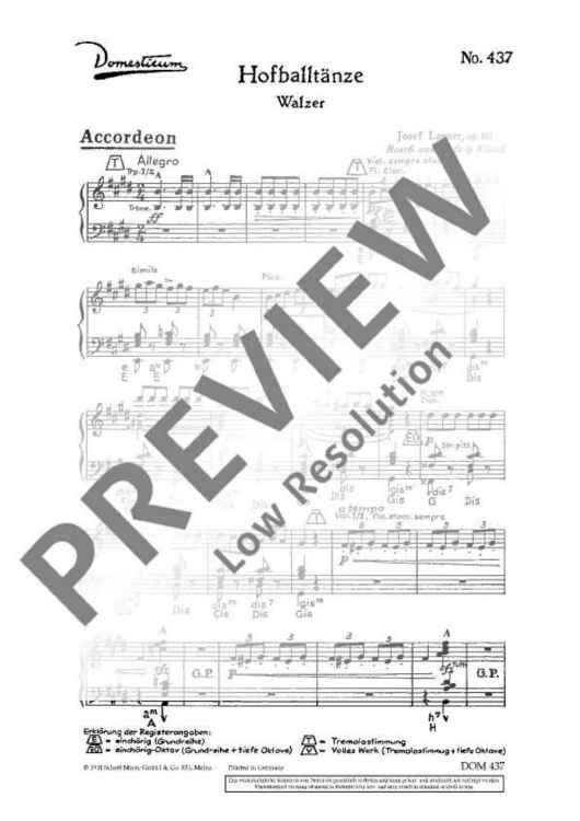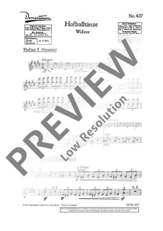 Digital Sheet Music for Hofballtänze - Score and Parts by Joseph Lanner scored for Salon Orchestra; id:488201