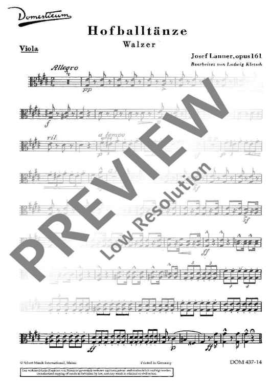Digital Sheet Music for Hofballtänze - Viola by Joseph Lanner scored for Salon Orchestra; id:488197