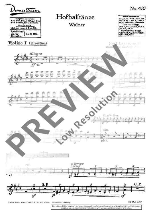 Digital Sheet Music for Hofballtänze - Violin I by Joseph Lanner scored for Salon Orchestra; id:488199