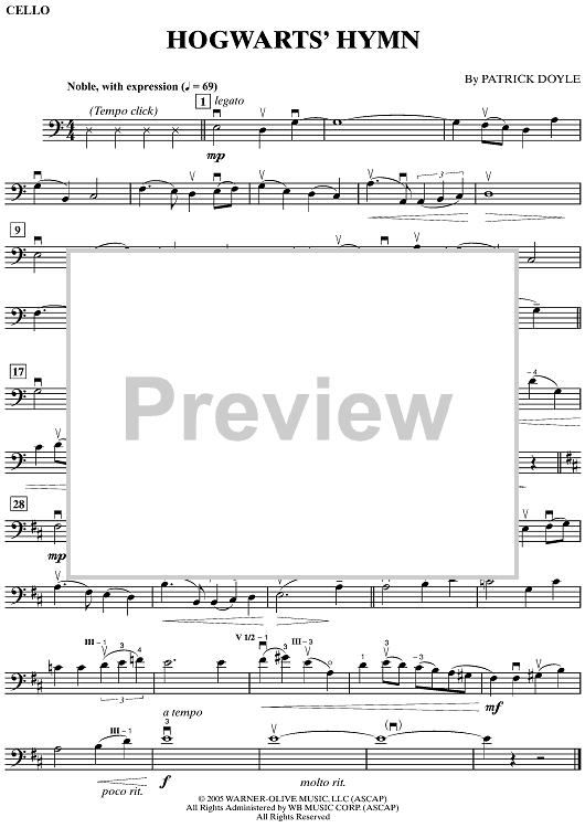 Digital Sheet Music for Hogwarts' Hymn by Patrick Doyle scored for Cello/Piano; id:498056