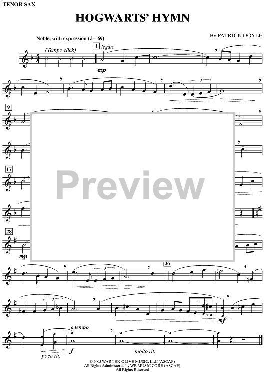 Digital Sheet Music for Hogwarts' Hymn by Patrick Doyle scored for Tenor Sax/Piano; id:498111
