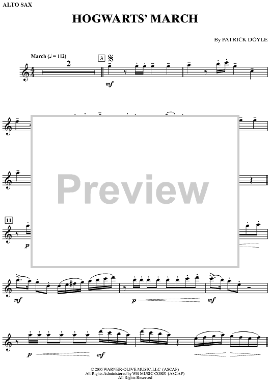 Digital Sheet Music for Hogwarts' March by Patrick Doyle scored for Alto Sax/Piano; id:498100