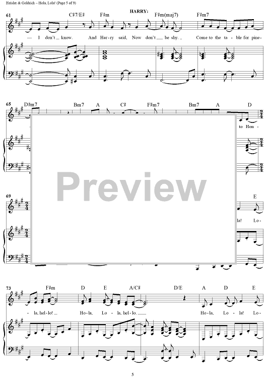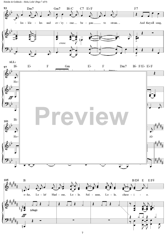 Digital Sheet Music for Hola, Lola! by Goldrich & Heisler scored for Piano/Vocal/Chords; id:457101