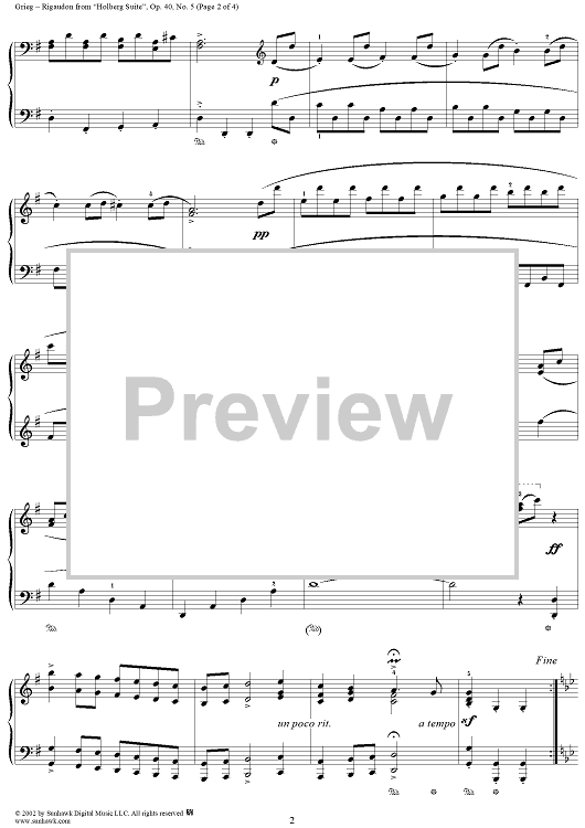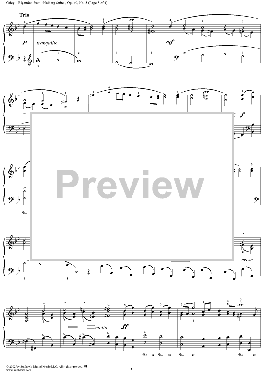 Digital Sheet Music for Holberg Suite, op. 40, no. 5: Rigaudon by Edvard Grieg scored for Piano Solo; id:267659