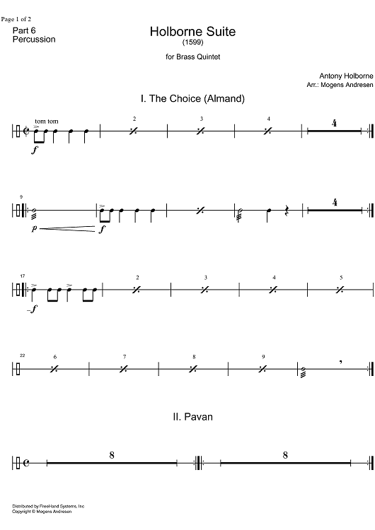 Digital Sheet Music for Holborne Suite - Percussion by Mogens Andresen, Antony Holborne scored for Brass Quintet; id:326909
