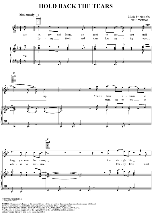 Digital Sheet Music for Hold Back the Tears by Neil Young scored for Piano/Vocal/Chords; id:263053