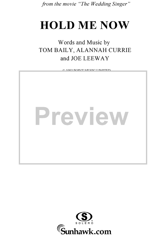 "Hold Me Now" Sheet Music by The Thompson Twins
