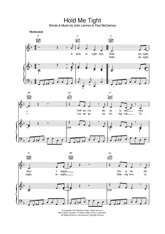 Digital Sheet Music for Hold Me Tight by Paul McCartney, The Beatles, John Lennon scored for Piano/Vocal/Chords; id:376110