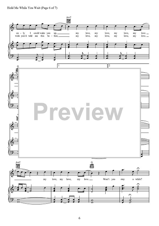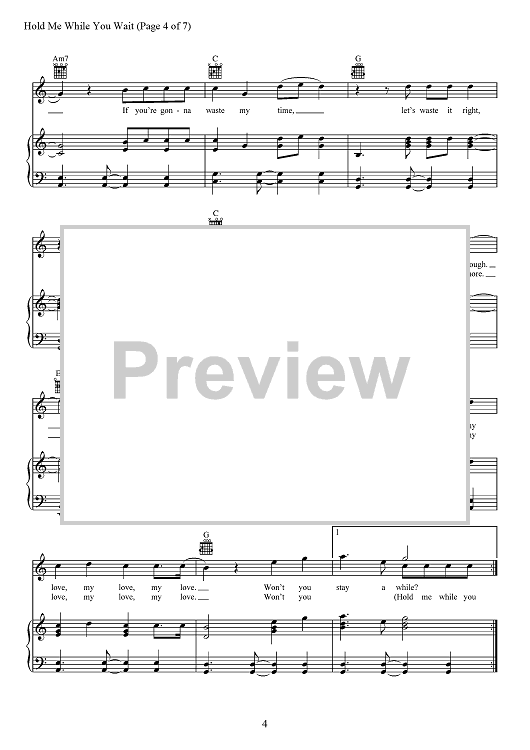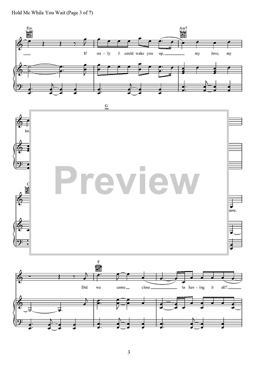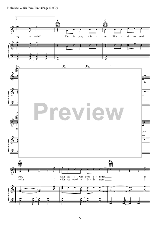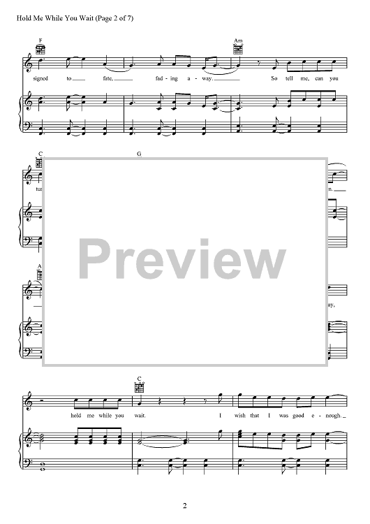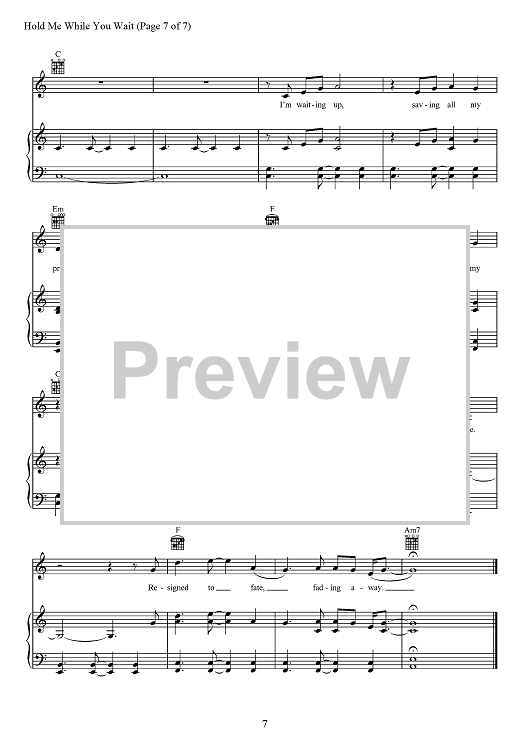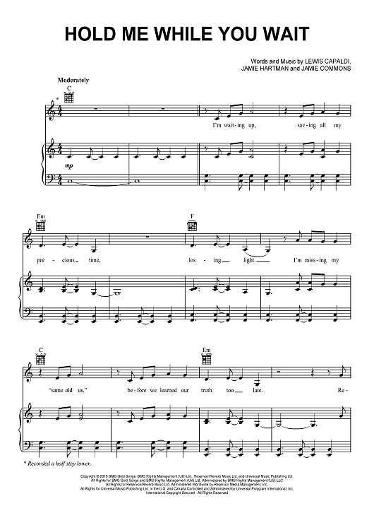 Digital Sheet Music for Hold Me While You Wait by Jamie Hartman, Lewis Capaldi, Jamie Commons scored for Piano/Vocal/Chords; id:467552