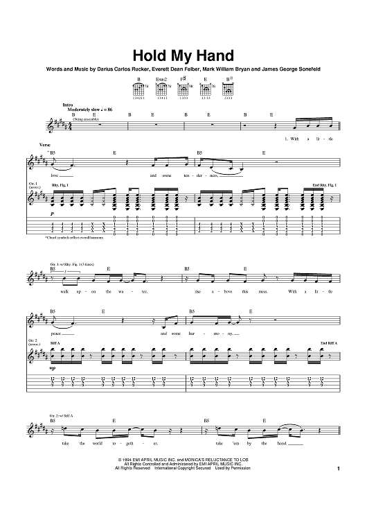 Digital Sheet Music for Hold My Hand by Hootie & the Blowfish, Mark Bryan, Darius Rucker, Dean Felber scored for Guitar Tab; id:370135