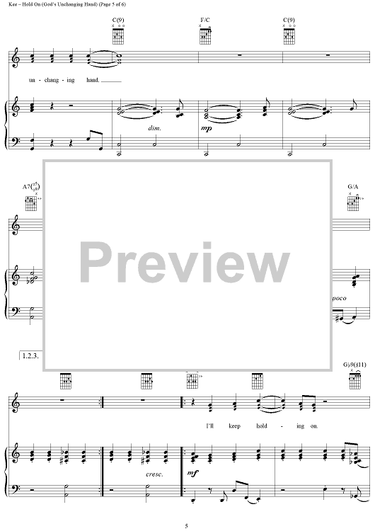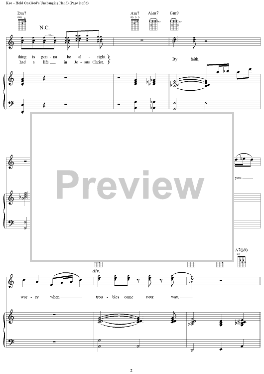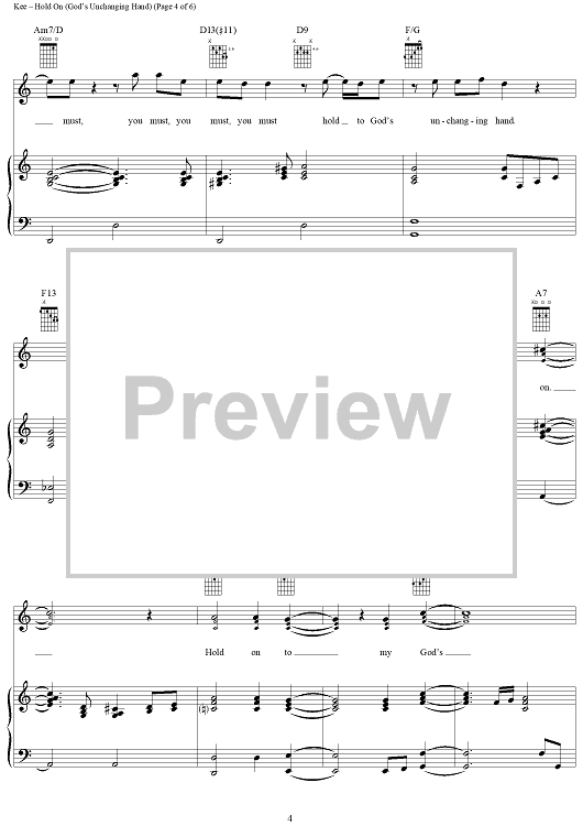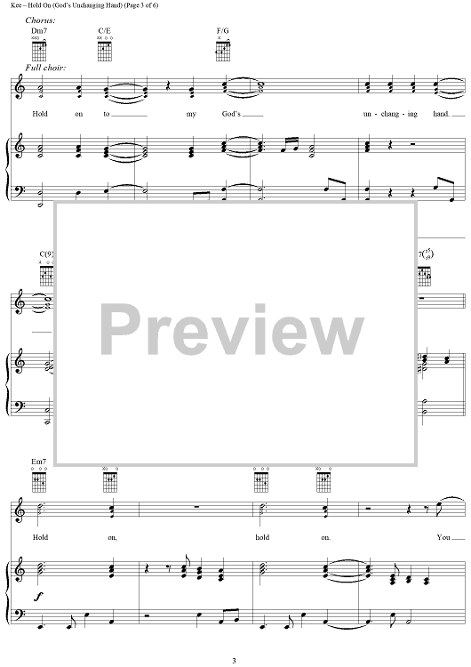 Digital Sheet Music for Hold On (God's Unchanging Hand) by John P. Kee, V.I.P. Music and Arts Seminar Mass Choir scored for Piano/Vocal/Chords; id:249973